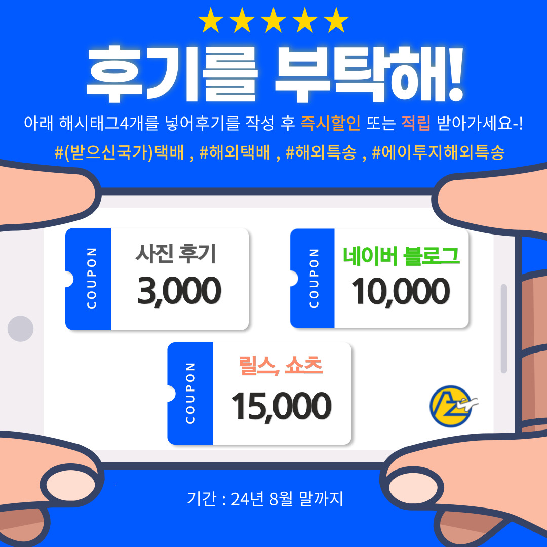 내용 : AtoZ 후기를 SNS에 올려주시면 발송시 즉시할인 또는 적립해드립니다.