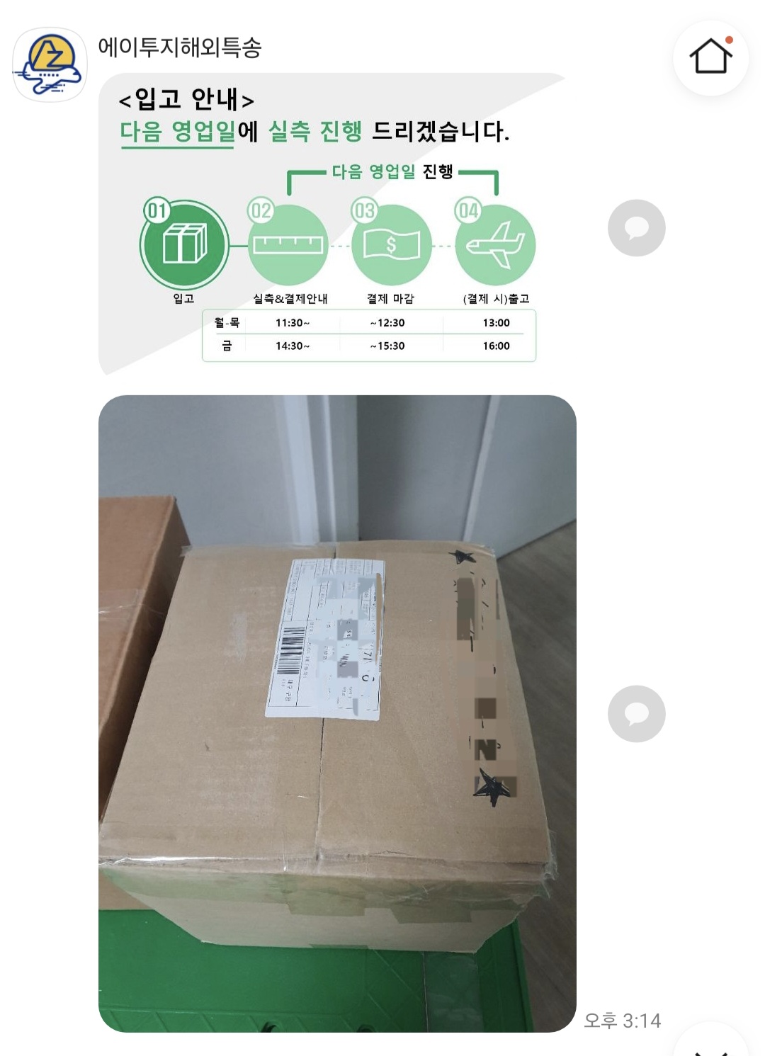 카톡으로 입고부터 출고까지 다 안내해주시고